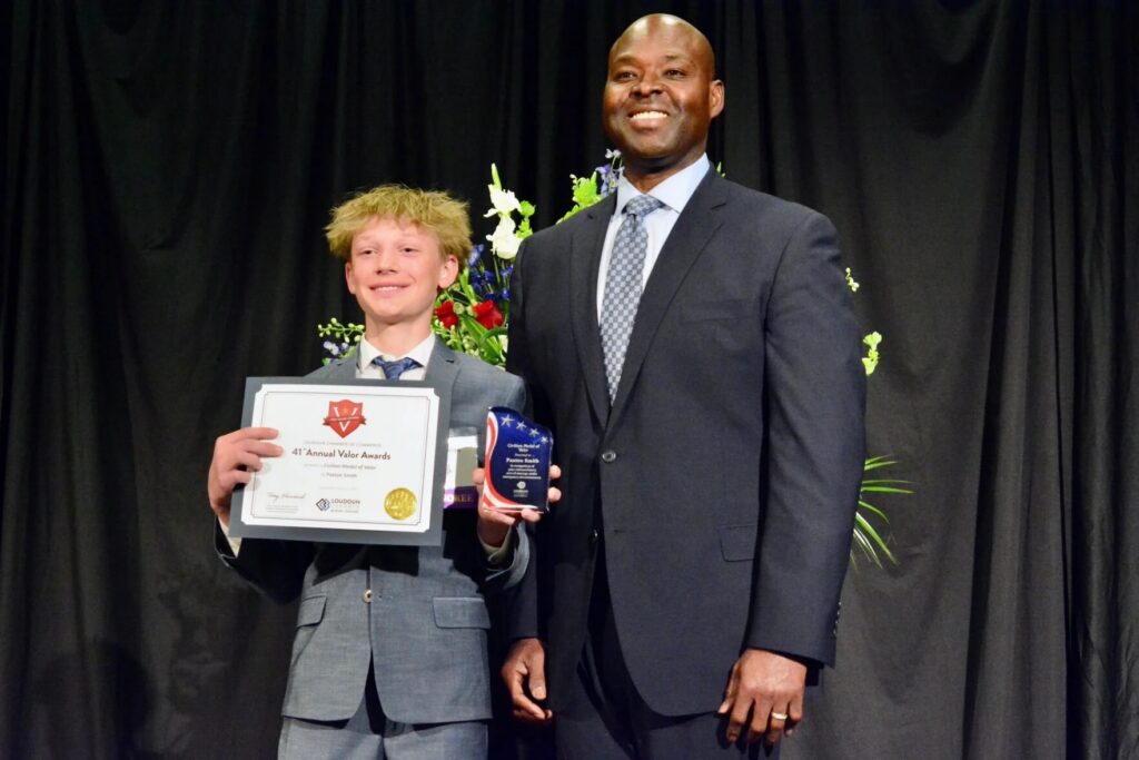 Our alumni community feels immense pride today. The Loudoun Chamber of Commerce recently hosted its 2026 Valor Awards. This event honors first responders and citizens who show extraordinary courage. Paxton Smith (Class of ’25) stood among this year’s distinguished honorees. He accepted the prestigious Civilian Medal of Valor for his heroic actions.